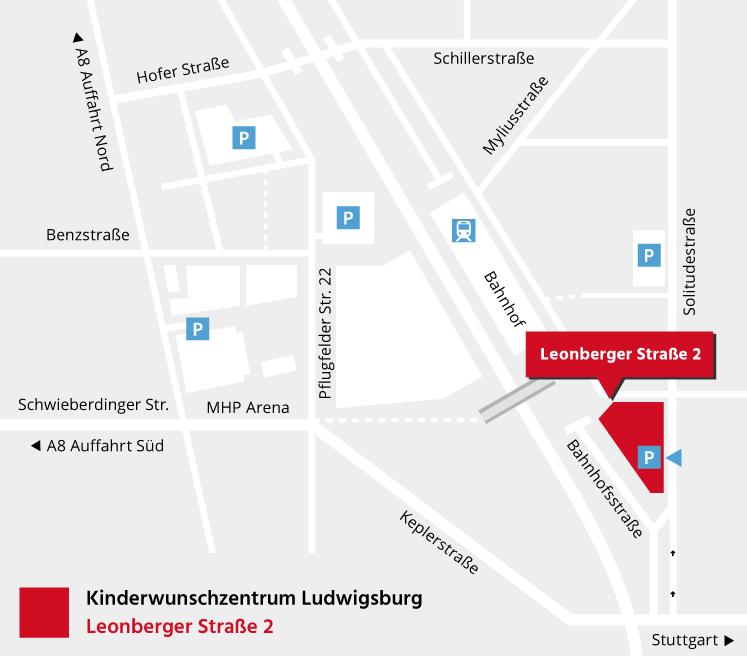 von der B27 aus Bietigheim-Bissingen kommend oder von der Autobahn A81 Ausfahrt Ludwigsburg Nord:
